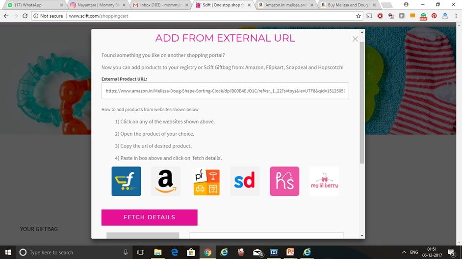 Scift also allows you to add items from other popular shopping marketplaces like Amazon or Flipkart.